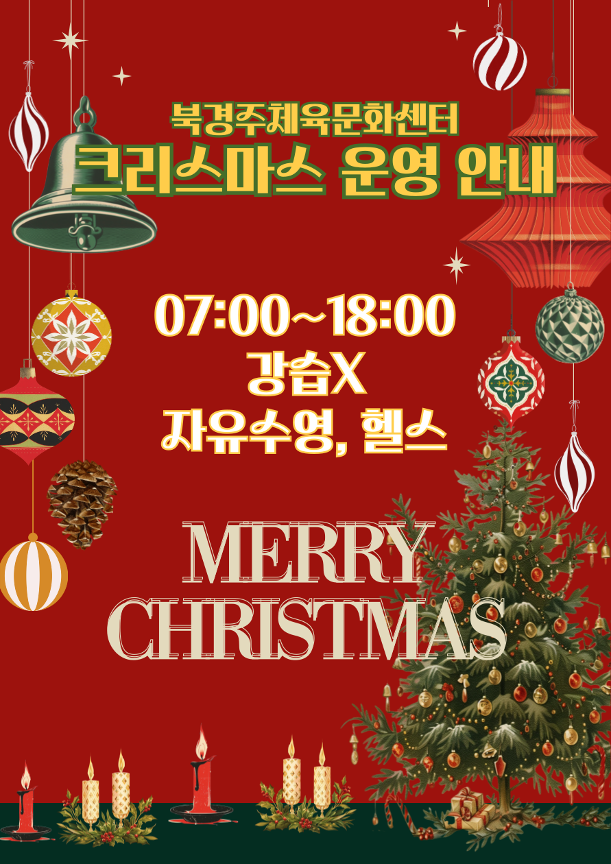 북경주체육문화센터 성탄절 이용 안내 작성자 : 관리자 조회 : 235 등록일시 : 2024년 12월 23일 15시 31분 27초 크리스마스운영-001.png [ Size : 806.57KB, Down : 256 ] 미리보기 다운로드 목록보기