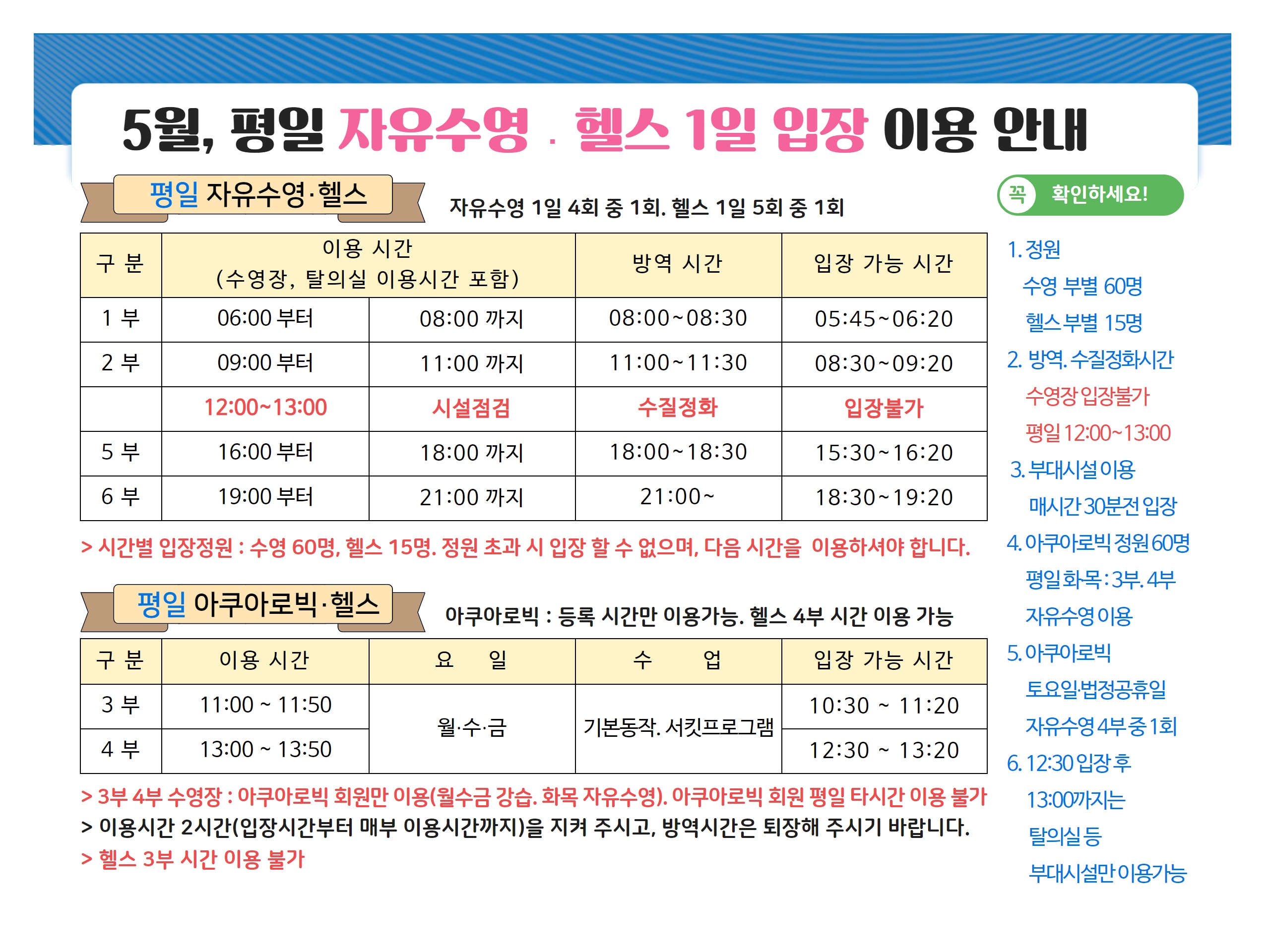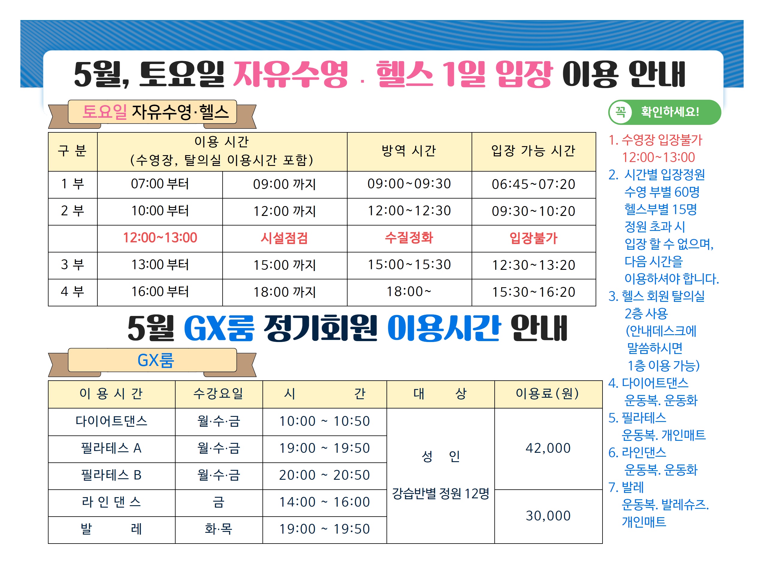 5월 정기회원 모집 안내 (수영. 헬스 1일 입장 이용)