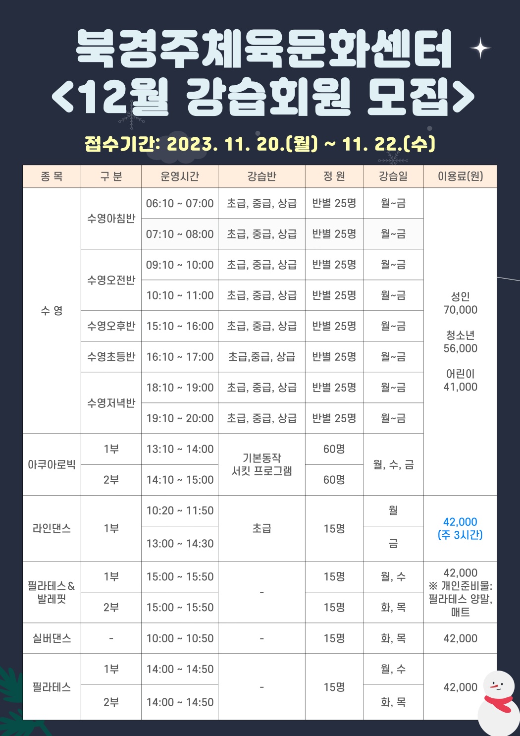 12월 정기회원 모집, 이용 안내 작성자 : 관리자 조회 : 677 등록일시 : 2023년 11월 10일 15시 32분 3초 KakaoTalk_20231114_155811093.jpg [ Size : 257.16KB, Down : 3,403 ] 미리보기 다운로드 1.jpg [ Size : 305.96KB, Down : 3,307 ] 미리보기 다운로드 목록보기