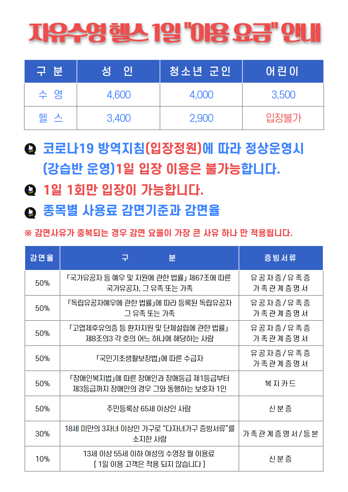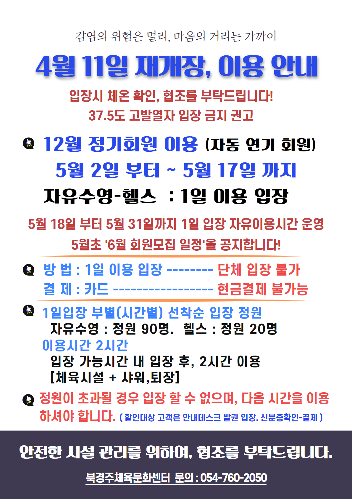 4월 11일 재개장, 이용안내(12월 정기회원 강습, 5월 2일 개강)