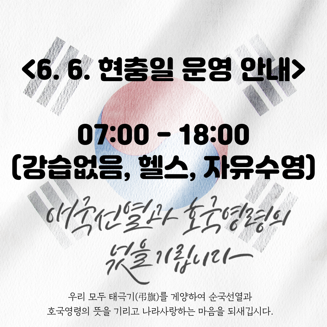 현충일 운영안내 작성자 : 관리자 조회 : 234 등록일시 : 2023년 5월 31일 11시 31분 36초 현충일운영안내.png [ Size : 1.28MB, Down : 318 ] 미리보기 다운로드 목록보기