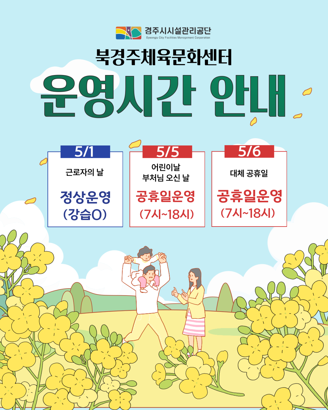 북경주체육문화센터 5월 공휴일 운영 안내 작성자 : 관리자 조회 : 394 등록일시 : 2025년 4월 28일 15시 29분 15초 5월 운영시간.png [ Size : 492.17KB, Down : 486 ] 미리보기 다운로드 목록보기