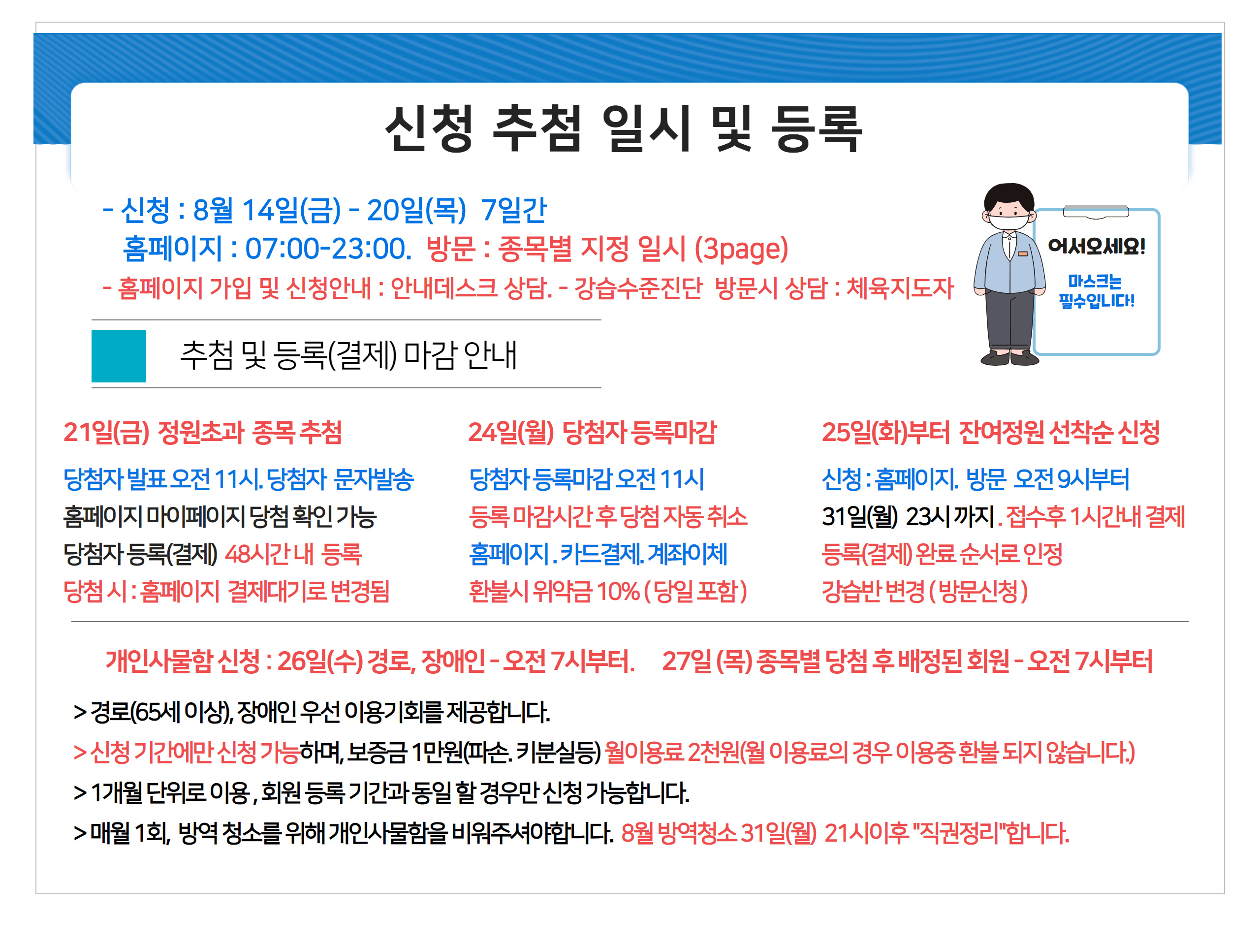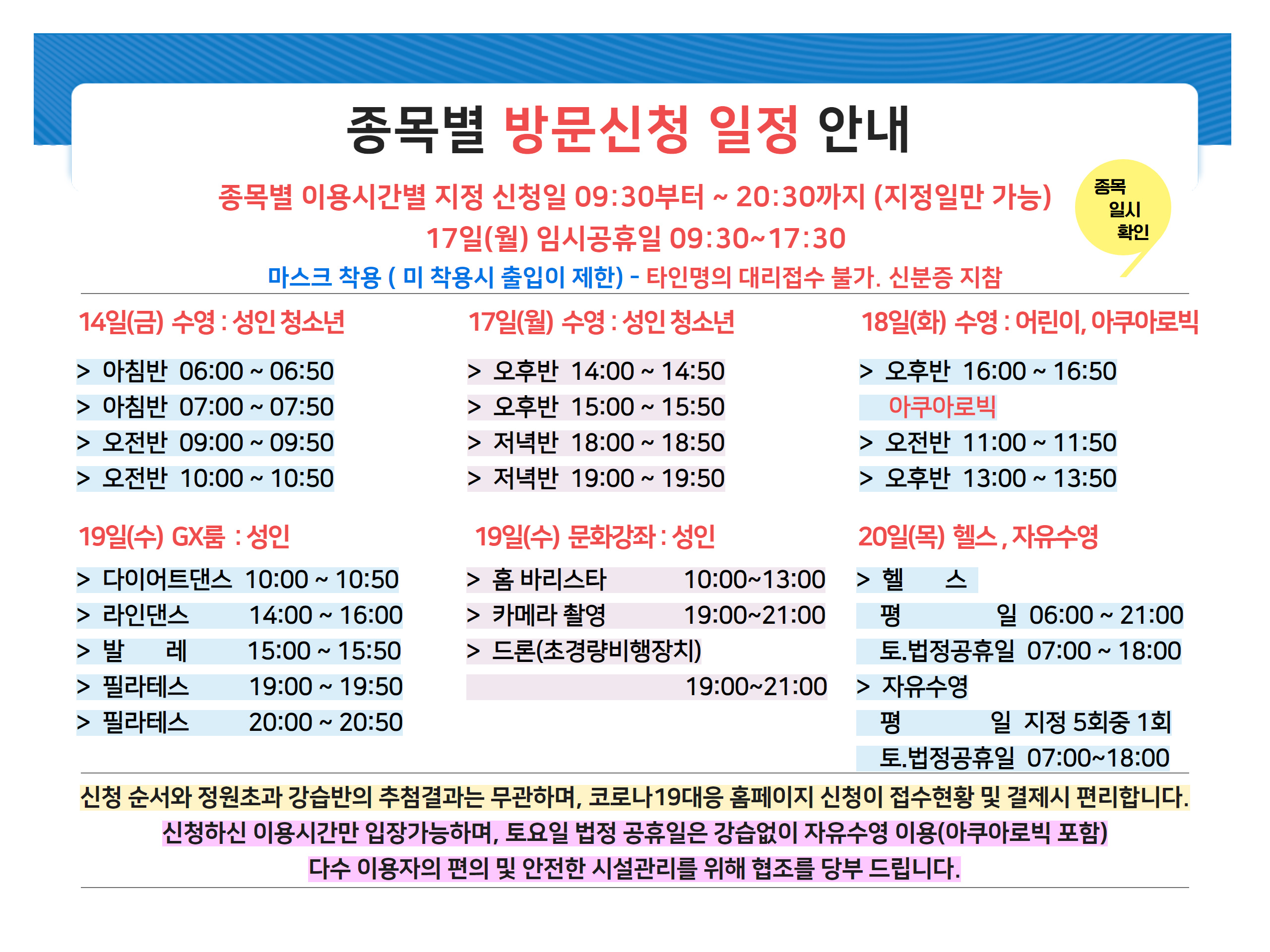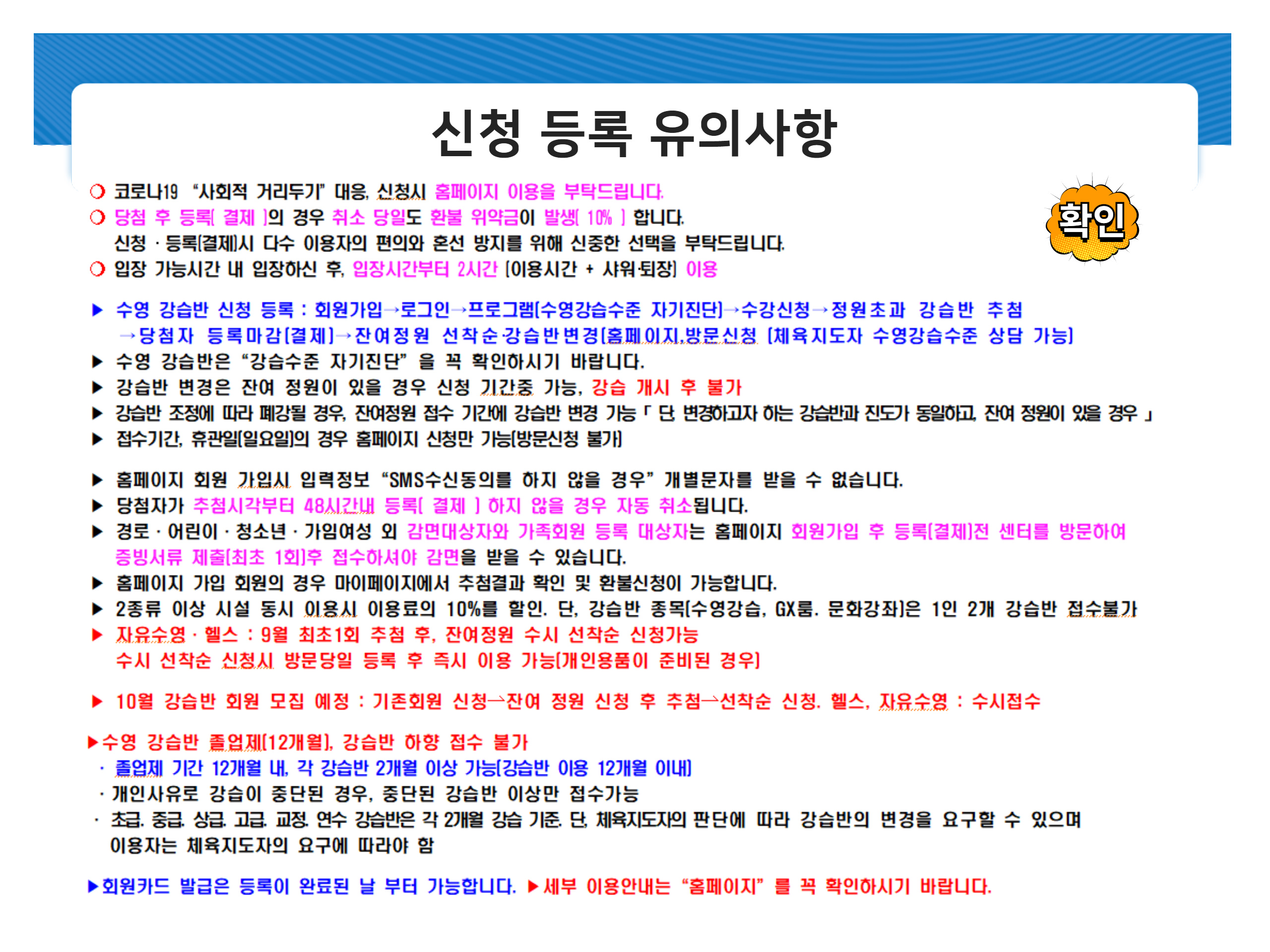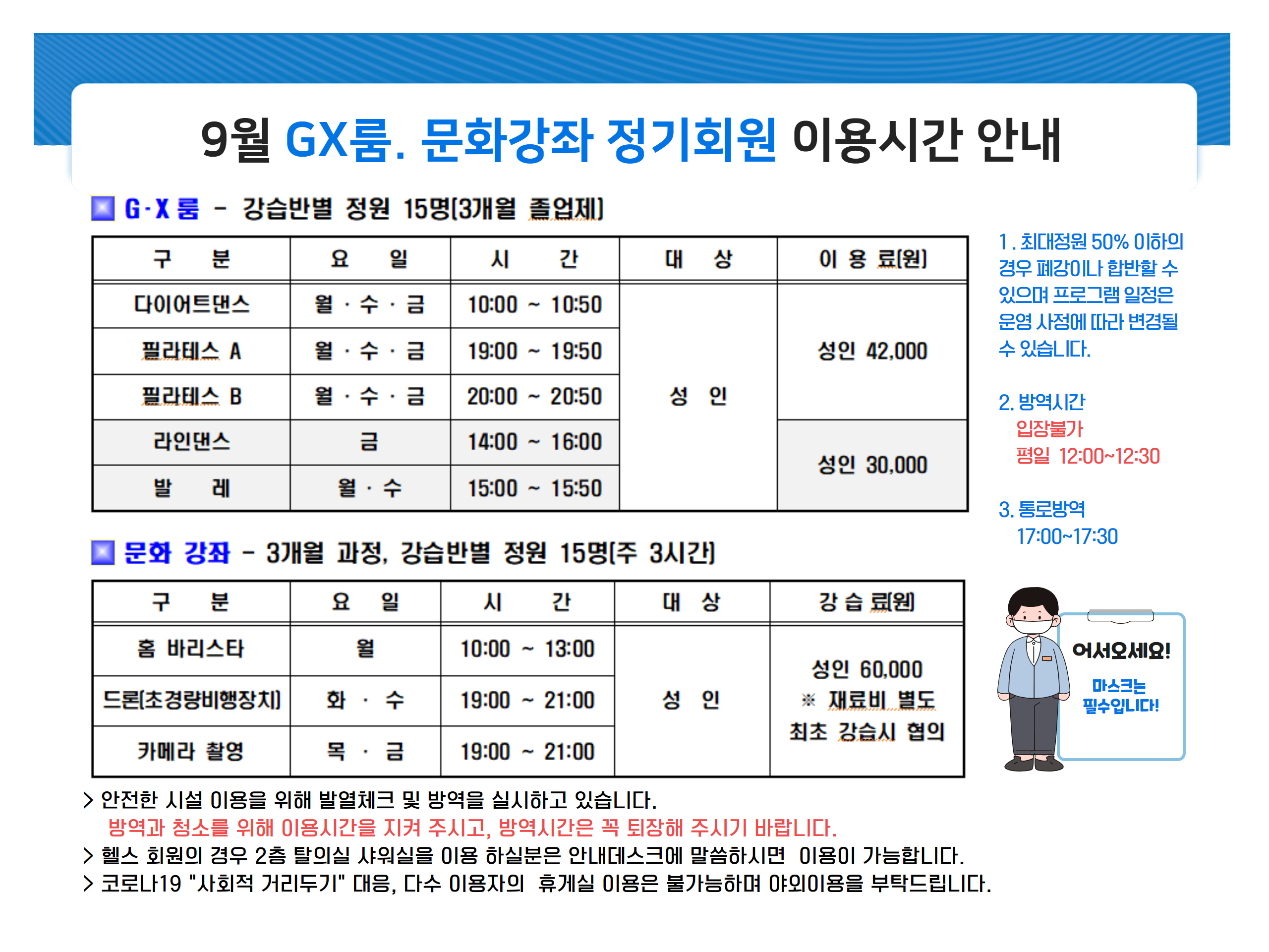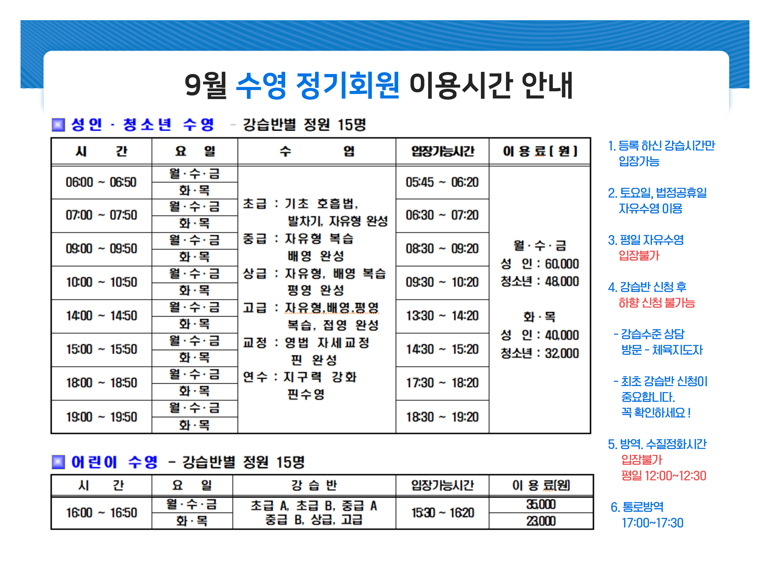 9월 정기회원 모집 안내 ( 강습반 감축운영 )