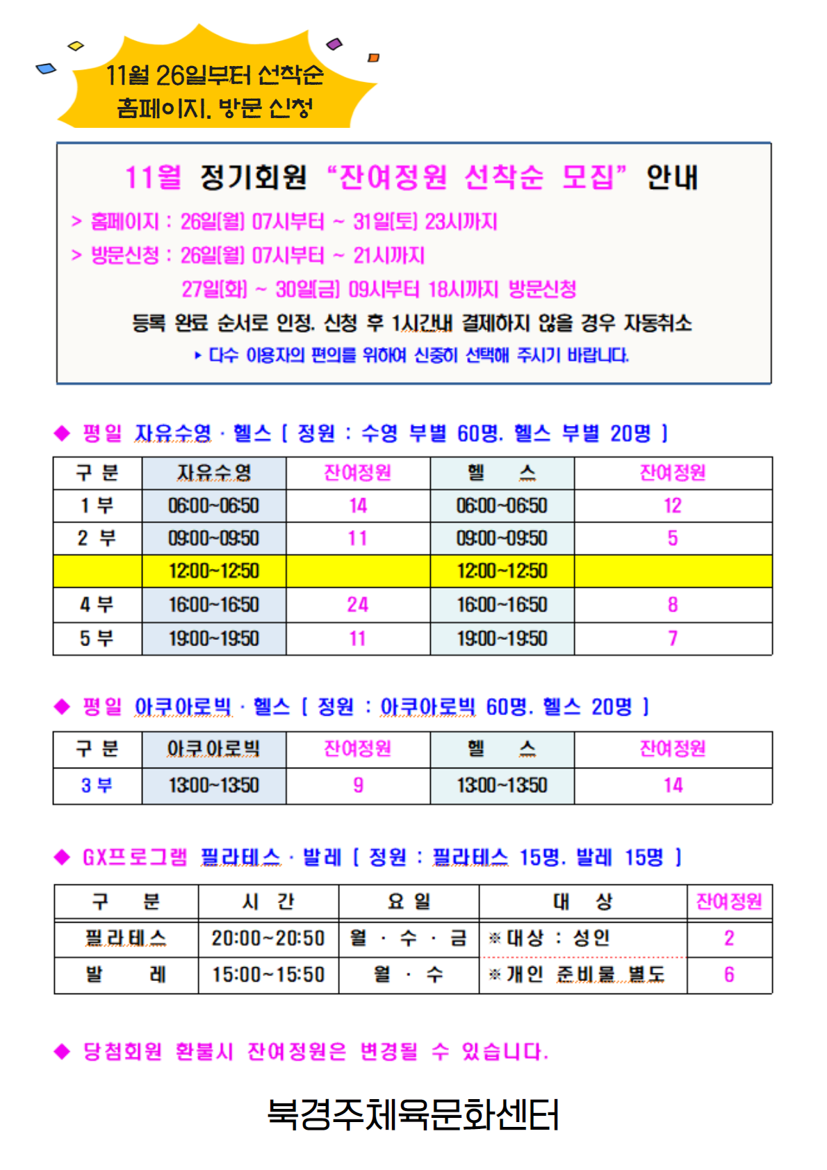 11월 정기회원 "잔여정원 선착순 모집" 안내 작성자 : 관리자 조회 : 774 등록일시 : 2020년 10월 24일 9시 42분 49초 11월 정기회원 잔여정원 선착순 모집 안내.png [ Size : 477.76KB, Down : 620 ] 미리보기 다운로드 목록보기