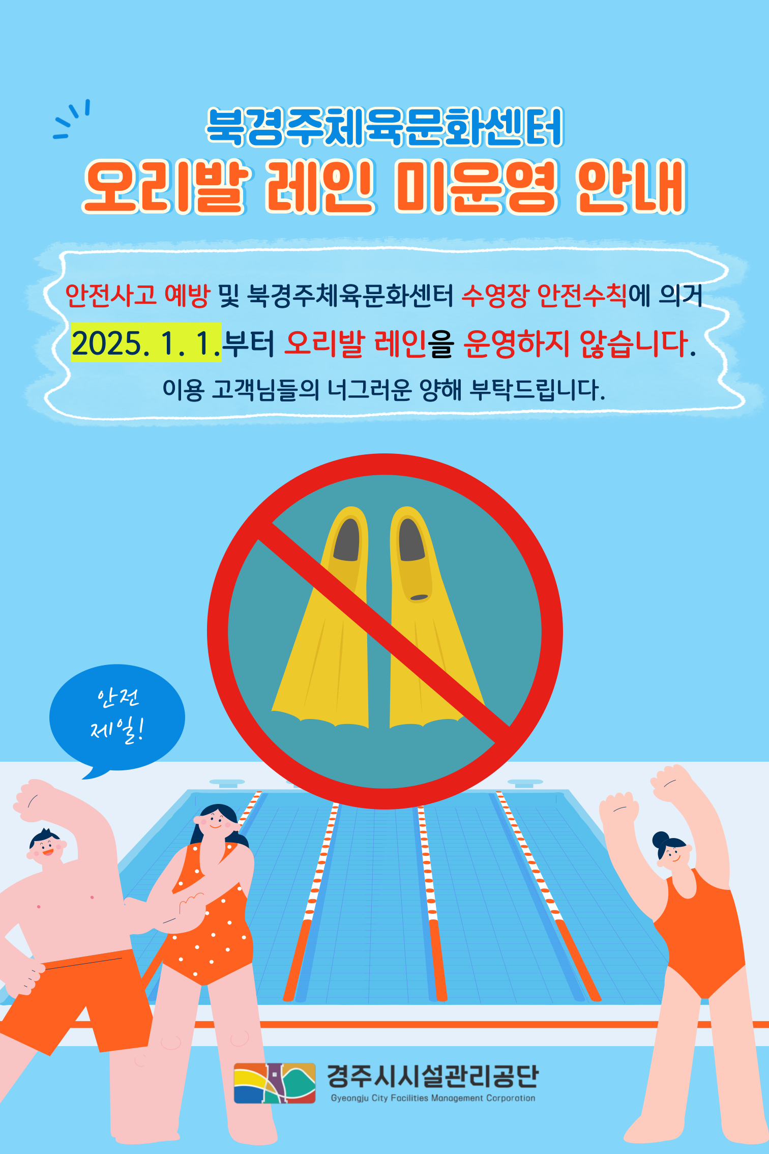 공지 북경주체육문화센터 오리발 이용 제한 안내 작성자 : 관리자 조회 : 614 등록일시 : 2024년 12월 2일 14시 44분 40초 오리발금지-세로형-001.png [ Size : 887.79KB, Down : 723 ] 미리보기 다운로드 목록보기