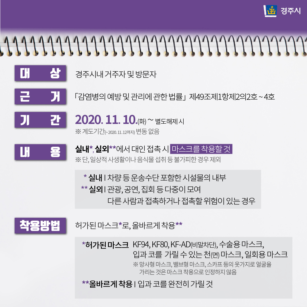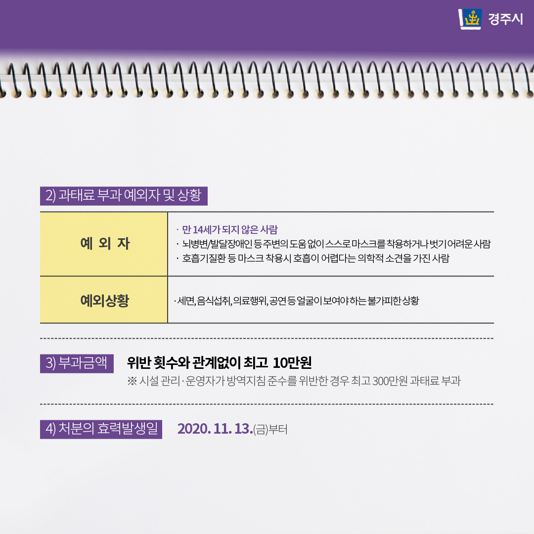 마스크 착용 의무화 행정명령 변경사항을 안내 (과태료 부과)