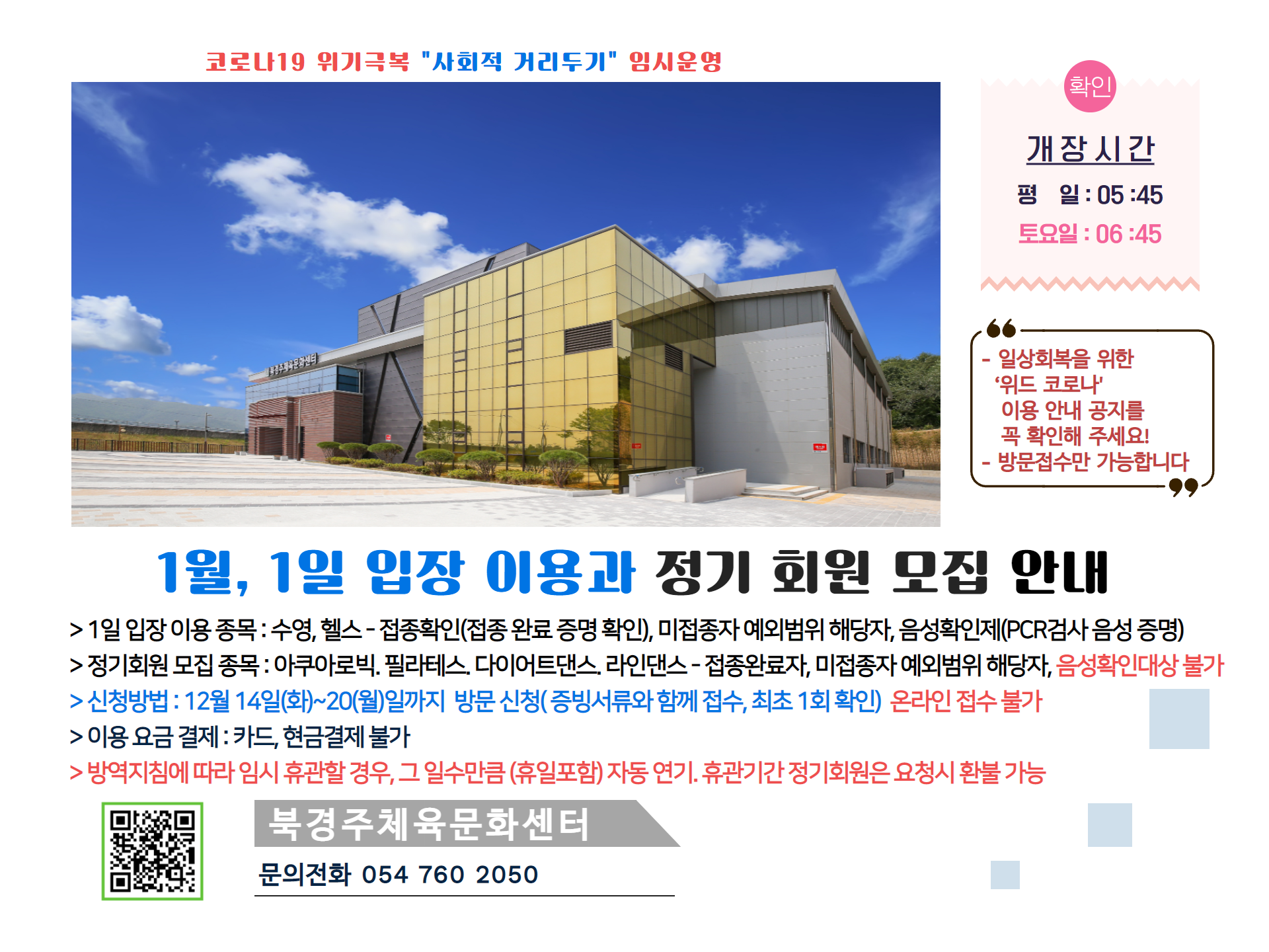 1월 정기회원 모집 안내 ( 수영. 헬스 1일 입장 이용 )