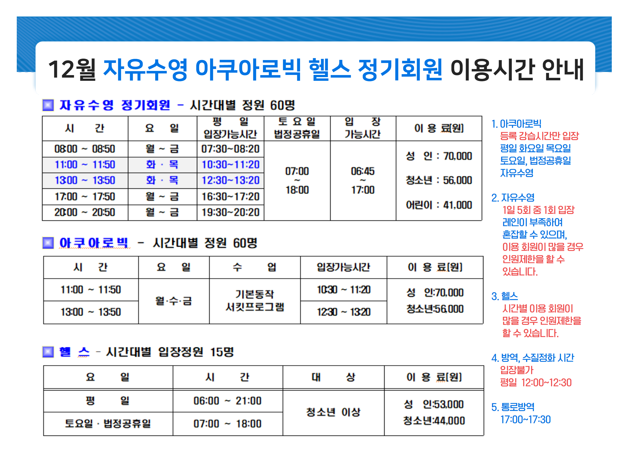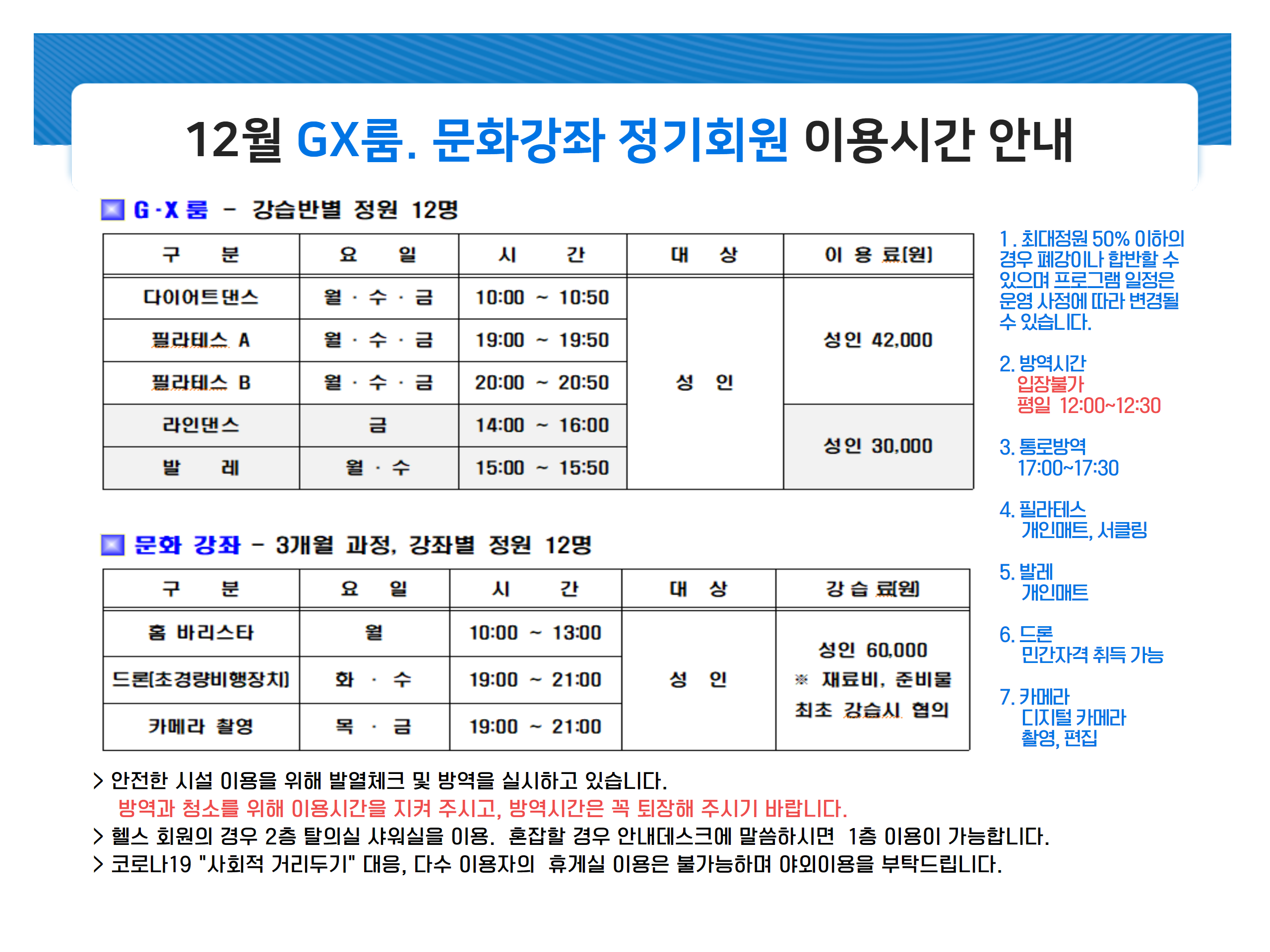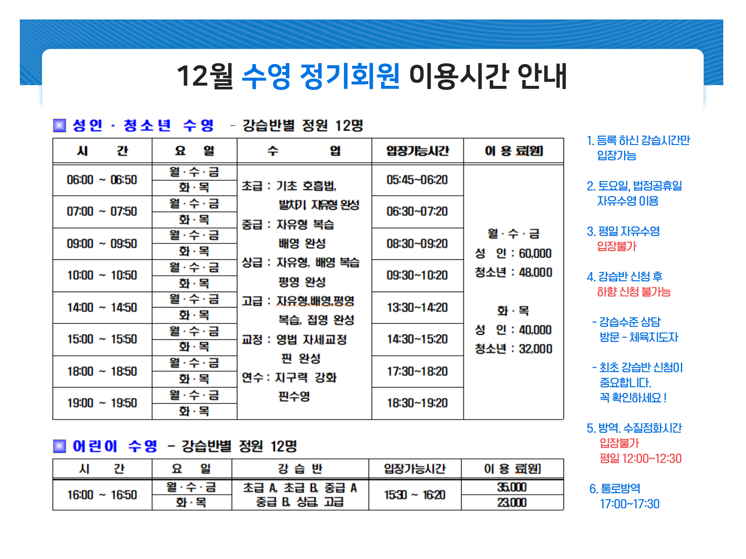 12월 정기회원 모집 안내 ( 강습반 운영 )
