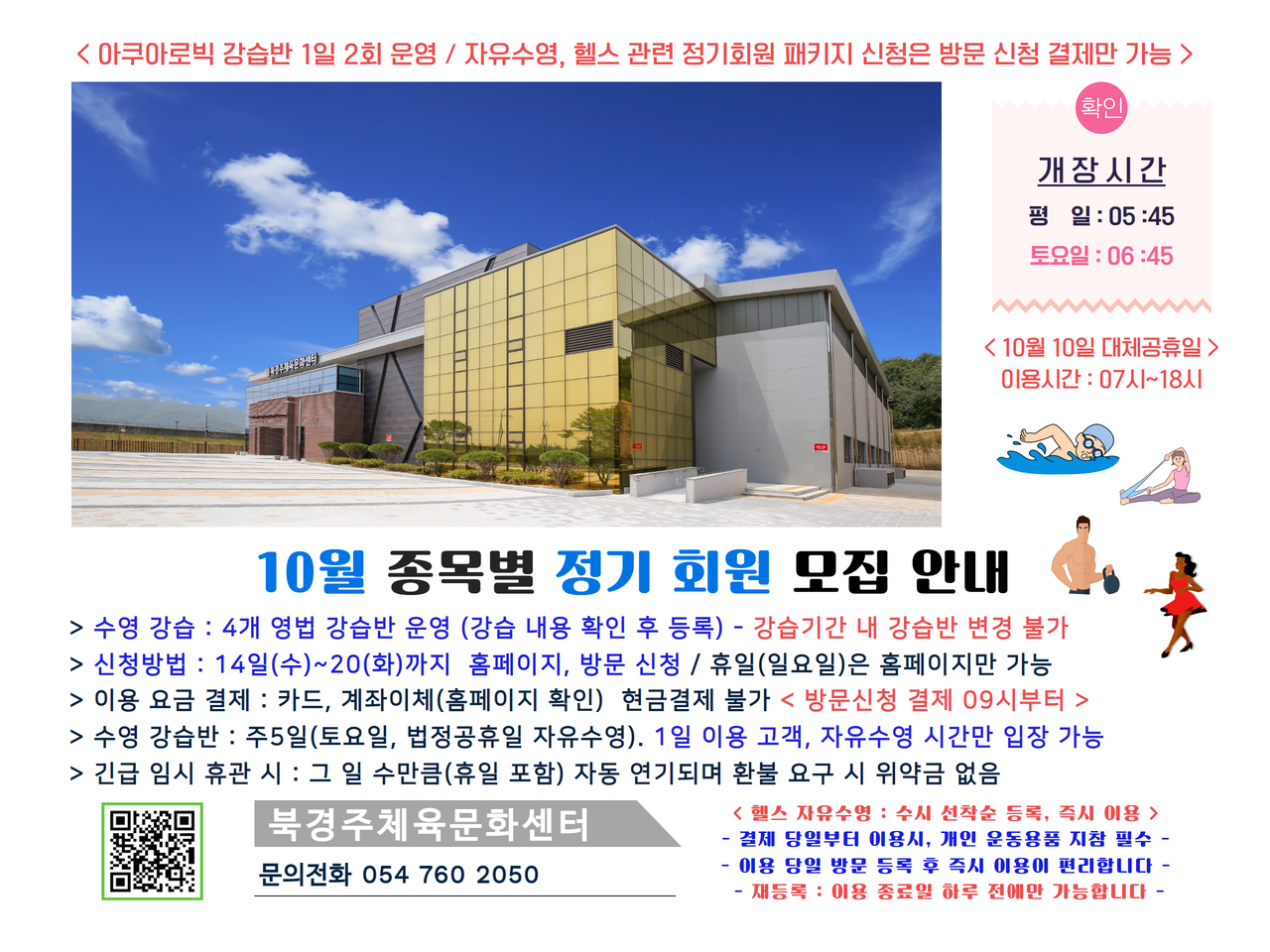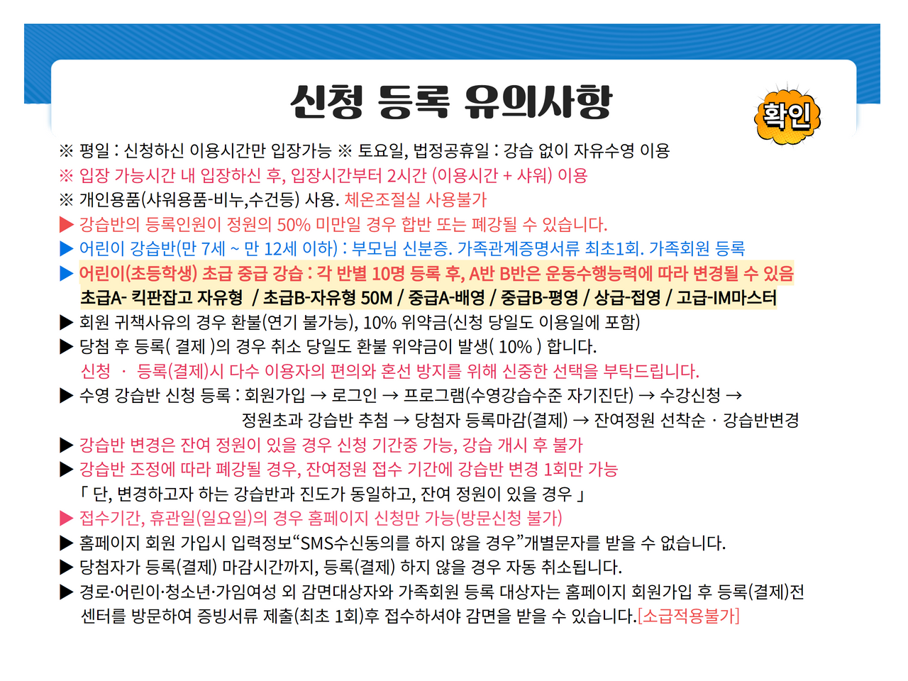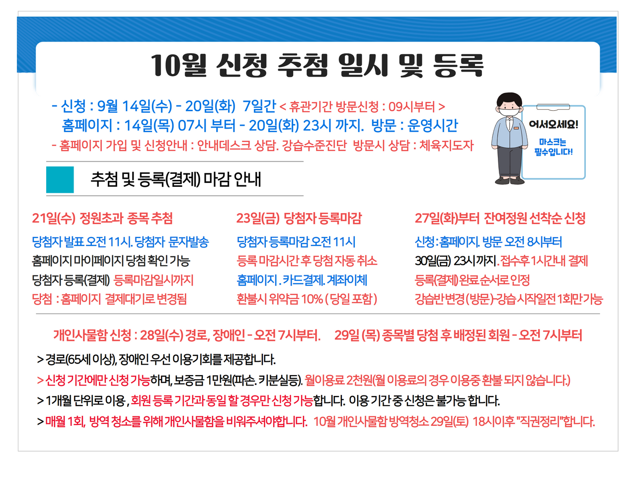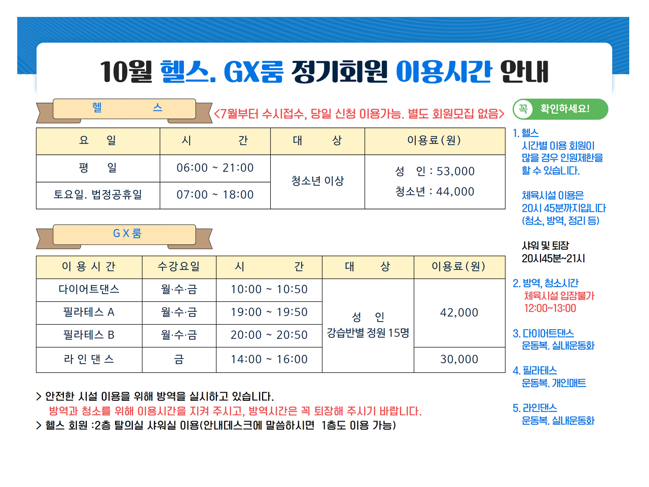 ▶ 헬스, 자유수영 1개 종목 신청은 26일부터 가능합니다.