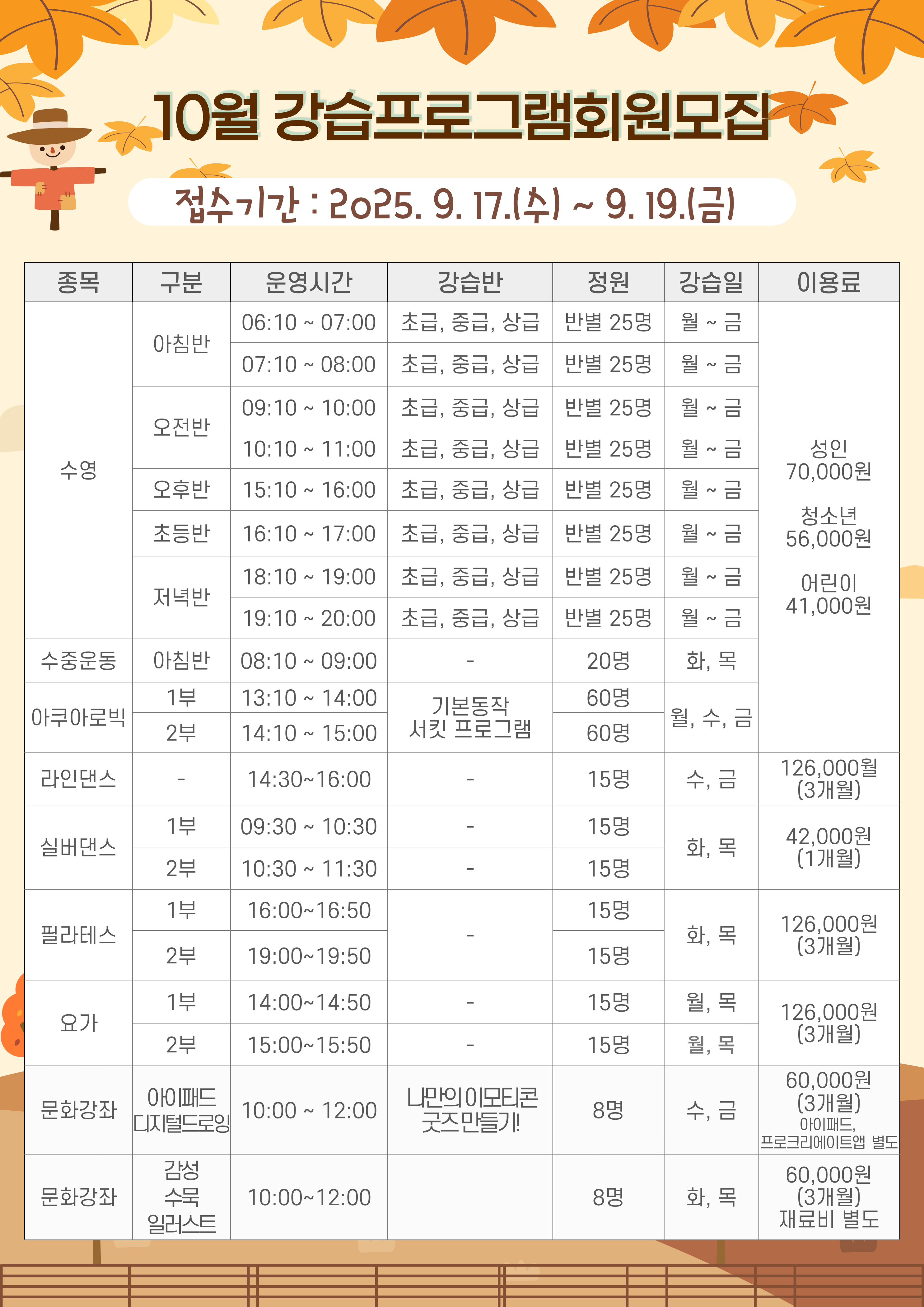 2025년 10월 강습 모집 및 등록 안내 작성자 : 관리자 조회 : 953 등록일시 : 2025년 9월 15일 13시 27분 25초 001.png [ Size : 957.28KB, Down : 1,552 ] 미리보기 다운로드 002.png [ Size : 983.09KB, Down : 1,501 ] 미리보기 다운로드 목록보기