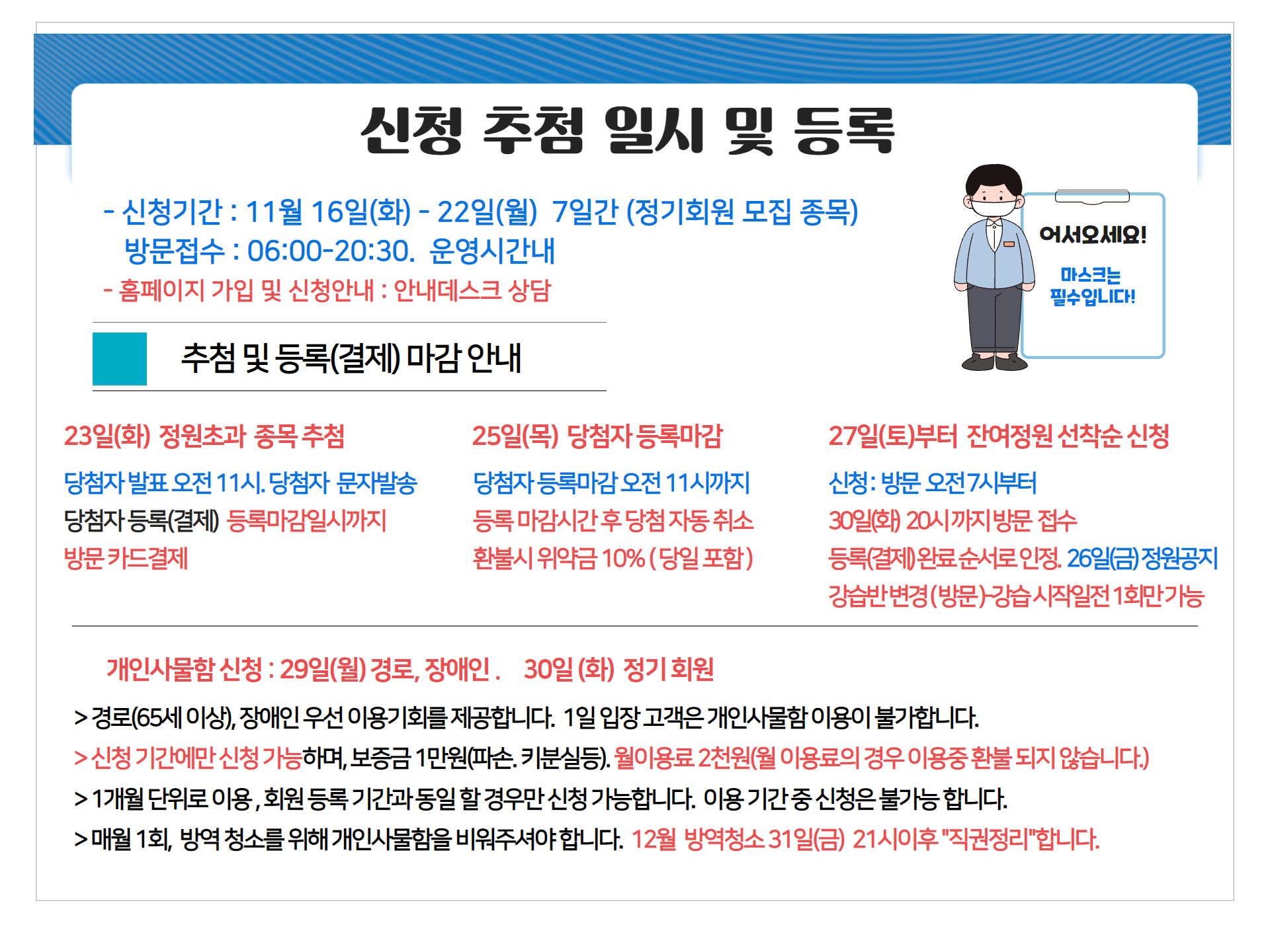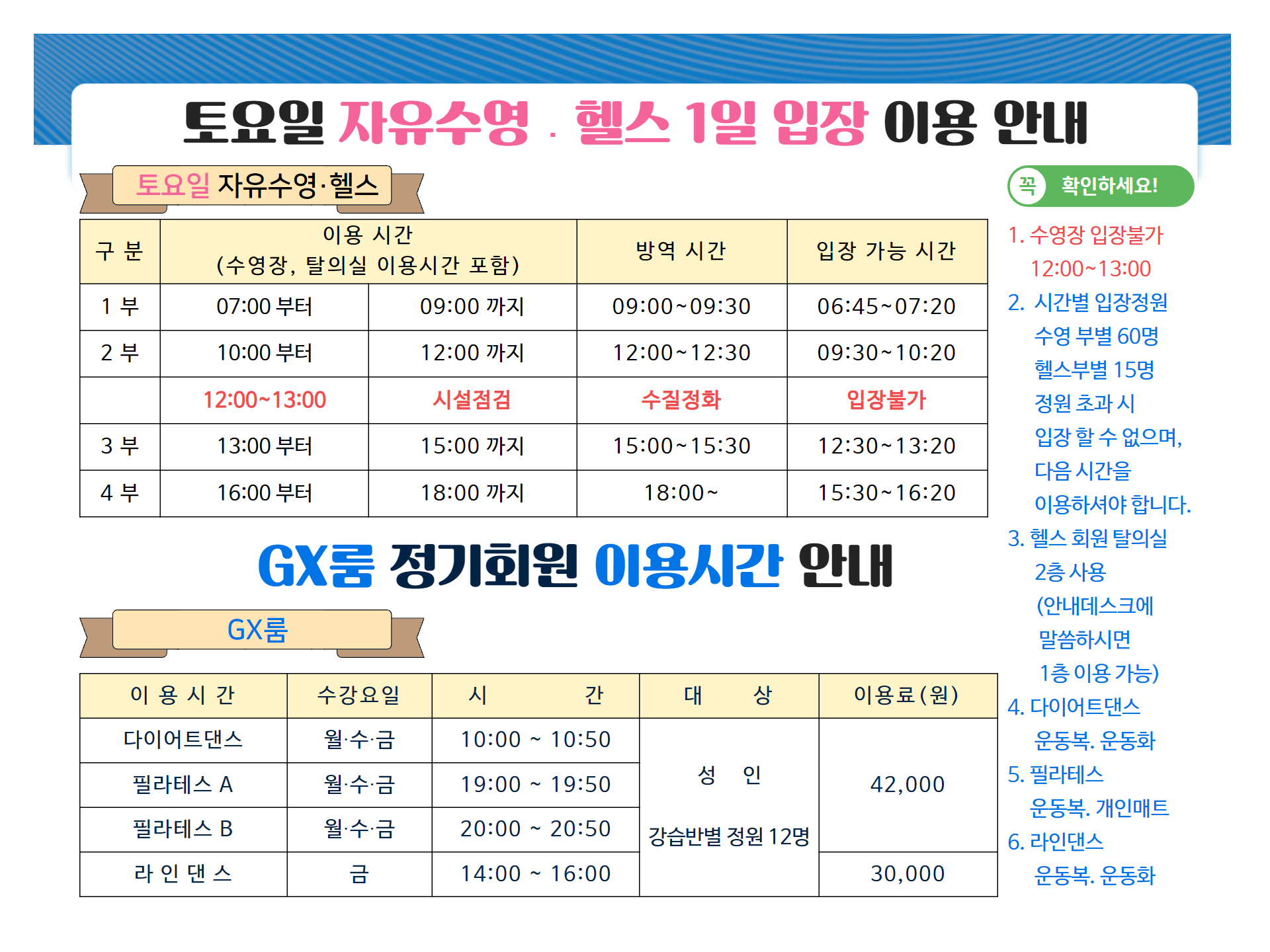 12월 정기회원 모집 안내 ( 수영. 헬스 1일 입장 이용 )