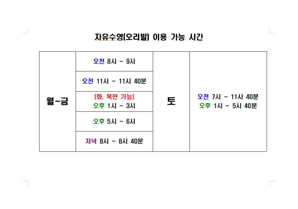 Q. 수요일 오후 13:00 에 자유수영이 가능한가요?