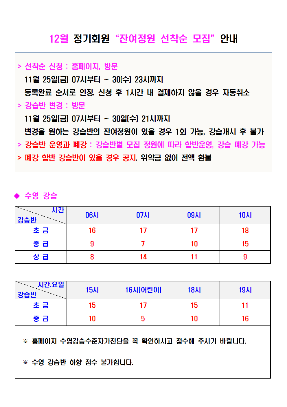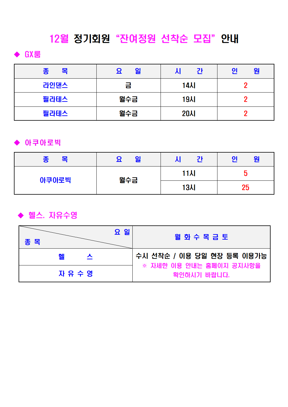 12월 정기회원 '잔여정원 선착순 모집' 안내 작성자 : 관리자 조회 : 582 등록일시 : 2022년 11월 23일 11시 38분 19초 선착순일정001.png [ Size : 81.41KB, Down : 871 ] 미리보기 다운로드 선착순일정002.png [ Size : 44.68KB, Down : 783 ] 미리보기 다운로드 목록보기