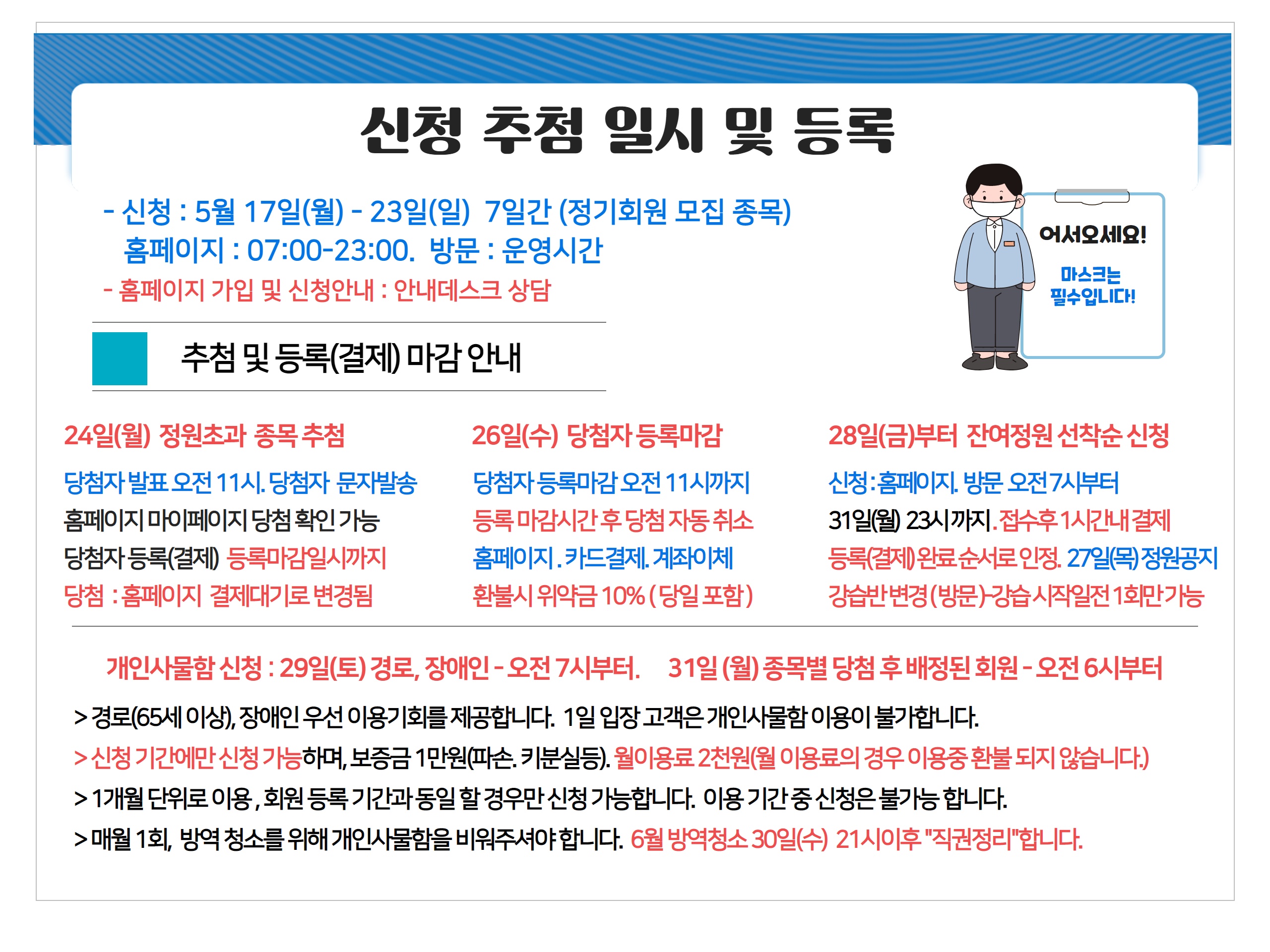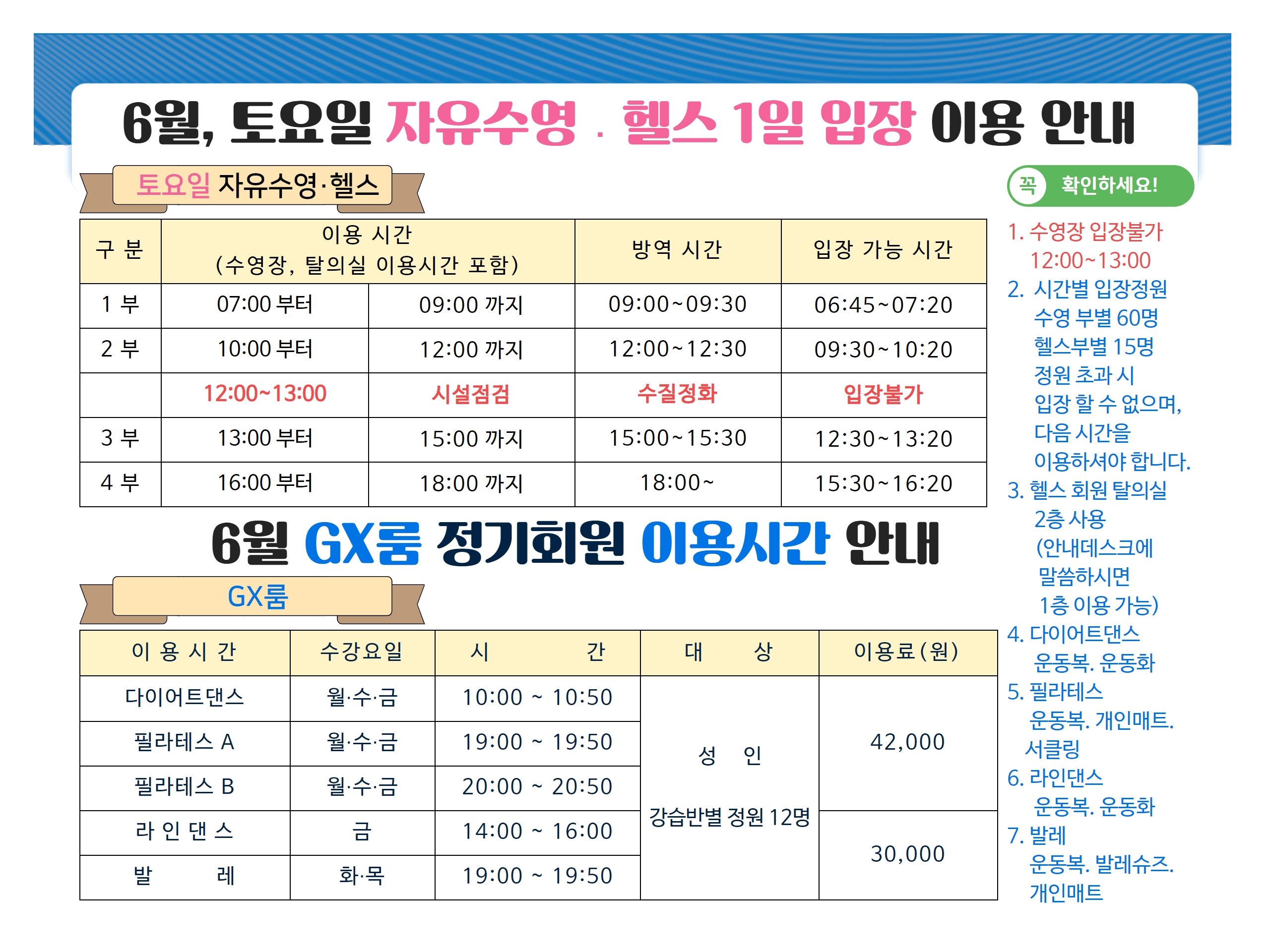 6월 정기회원 모집 안내 (수영. 헬스 1일 입장 이용)
