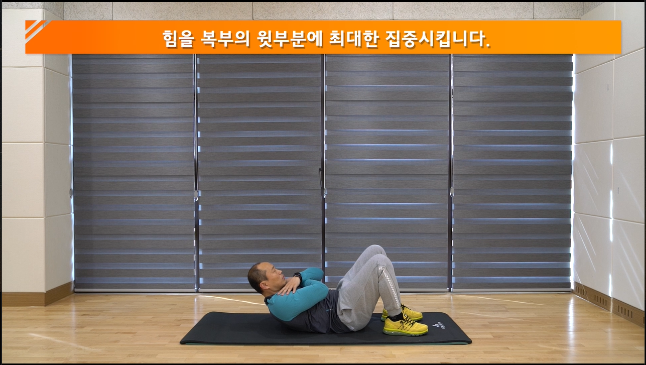 오늘은 집 안에서도 충분히 할 수 있는 기본적인 복근운동을 배워보겠습니다. 배꼽을 기준으로 윗부분을 자극하는 상복부 운동, 복부 아랫부분을 자극하는 하복부 운동 그리고 신체 동작수행을 도와주는 코어근육 운동을 해 보겠습니다.